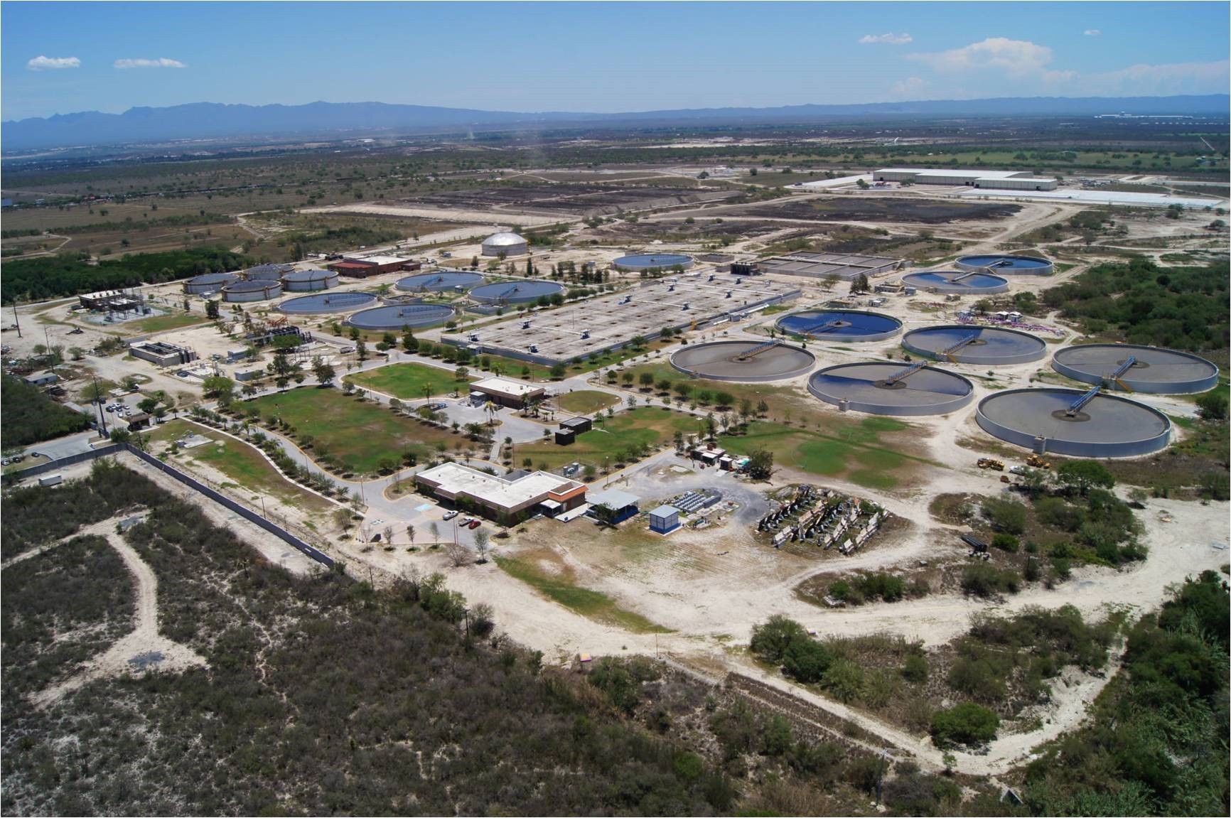 Planta Dulces Nombres.- ubicada en Carr. Pesquería a Dulces Nombres, km 2.5, Municipio de Pesquería, NL. Inicia su operación en enero de 1996 con una capacidad de 5,000 L/s. A partir del año 2012 incrementa 50% su capacidad instalada, a 7,500 L/s. El tratamiento consiste en un pre-tratamiento de rejillas, bombeo de influente y desarenadores, al que le continúa una sedimentación primaria, para continuar con un proceso secundario de lodos activados y desinfección del efluente.
